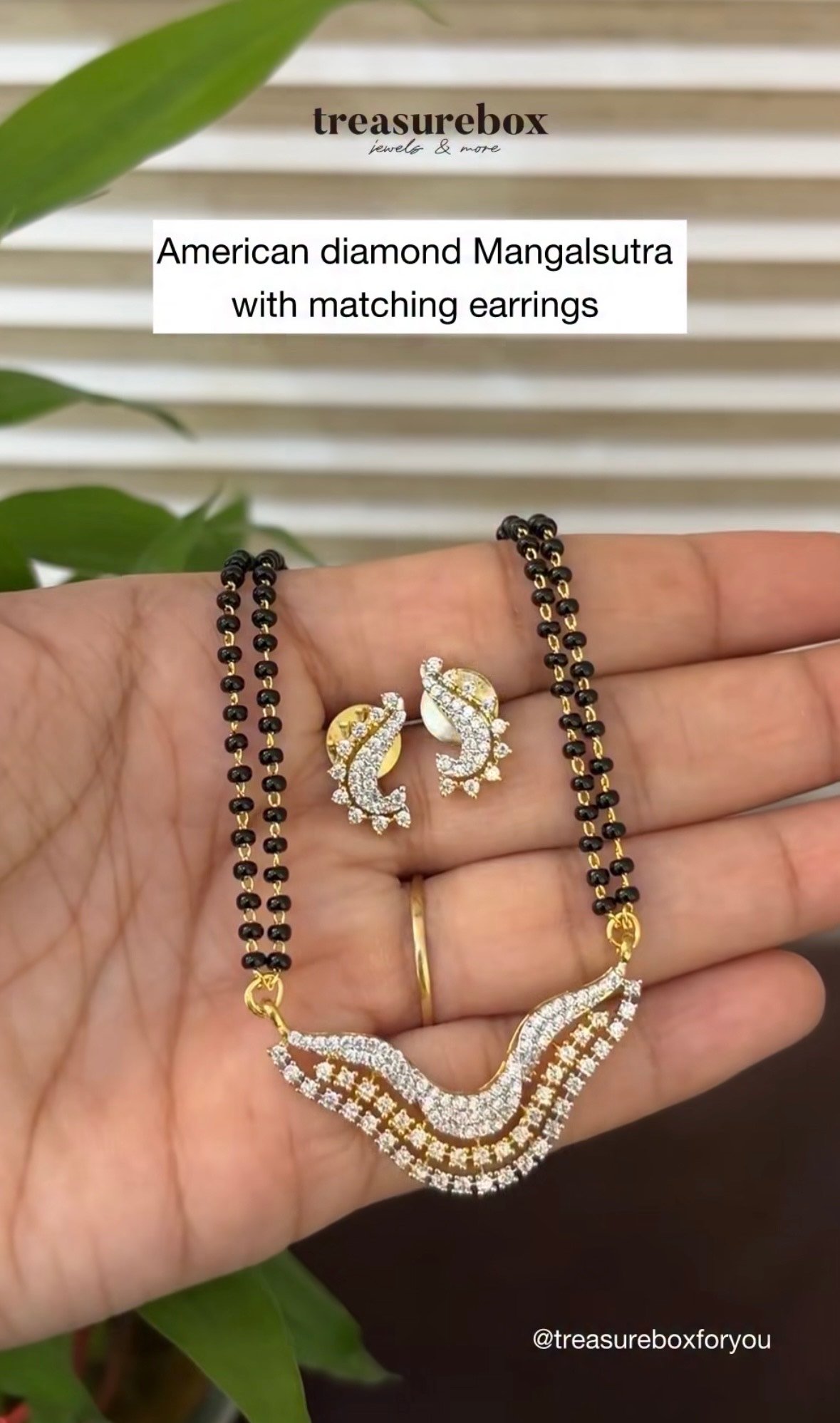 A beautifully crafted mangalsutra set featuring sparkling American diamonds for a refined and timeless look. Designed to balance tradition with modern elegance, this set is perfect for Festive wear as well as special occasions.
