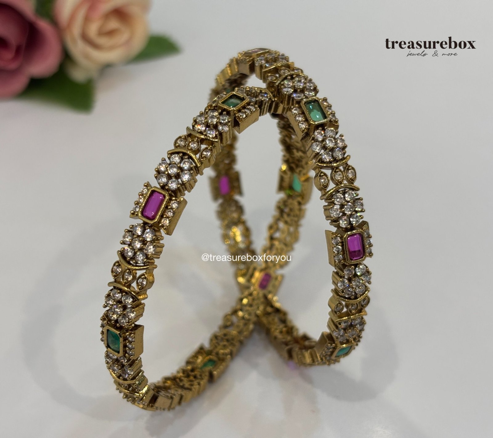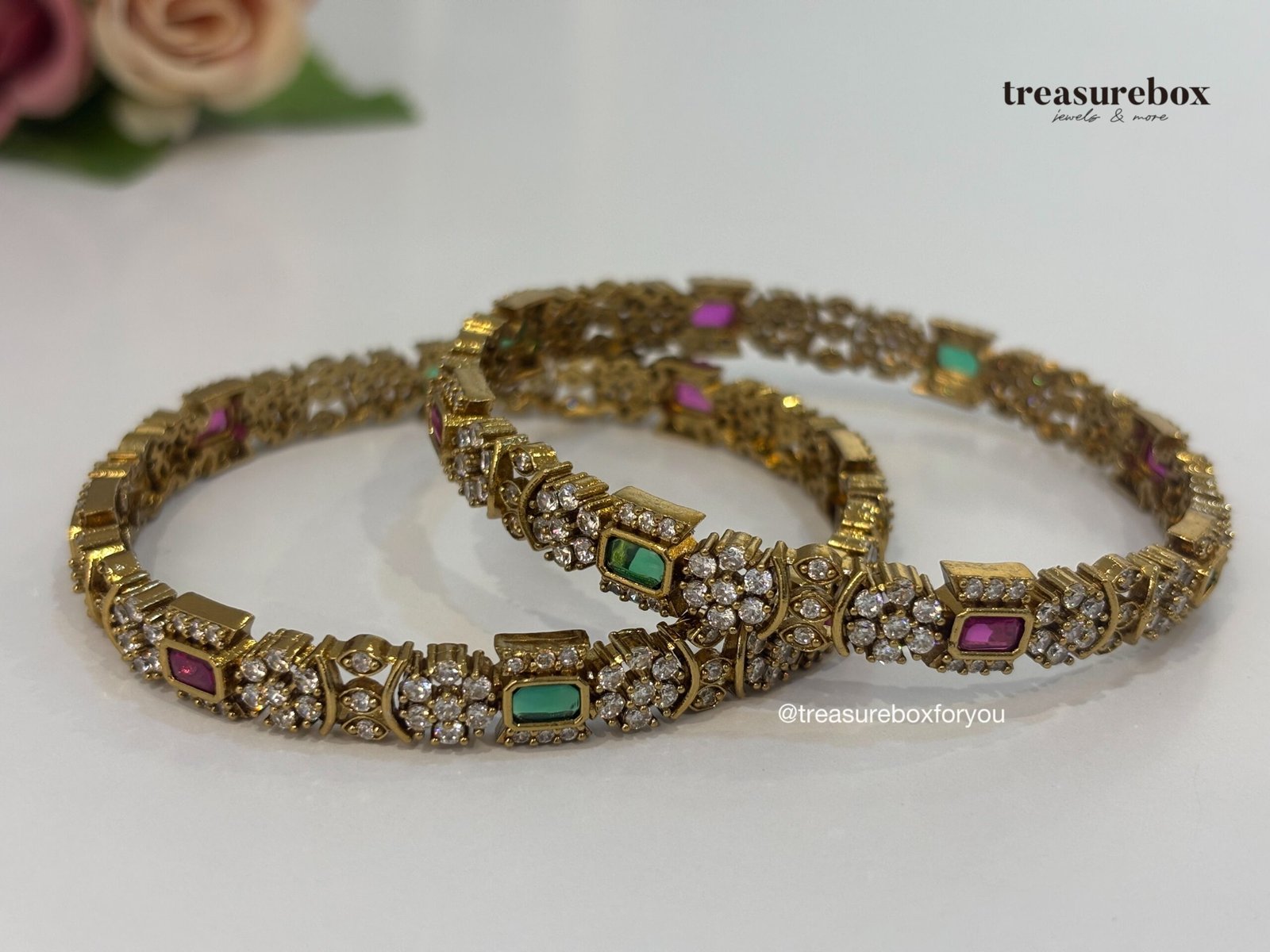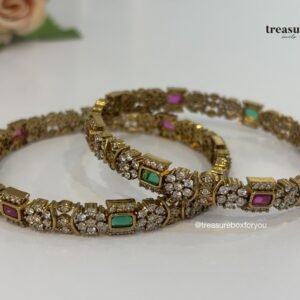 A classic antique gold plated bangles set designed to elevate your traditional look. Featuring rich antique finish and delicate detailing.