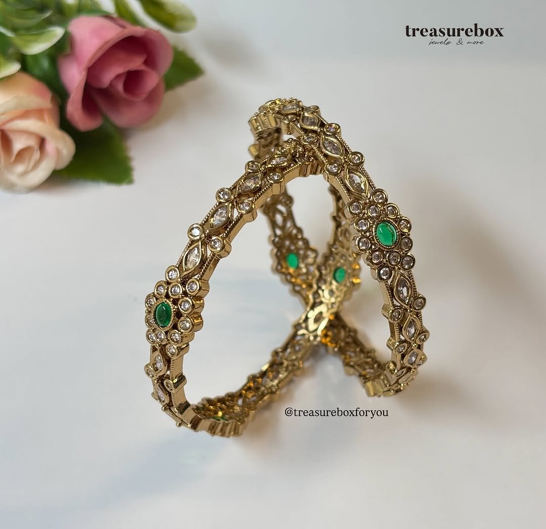 Elegant mehendi gold-plated bangles crafted for wedding events and festive occasions. Features a rich traditional finish, lightweight feel, and comfortable fit, perfect to pair with sarees or lehengas for a graceful ethnic look.