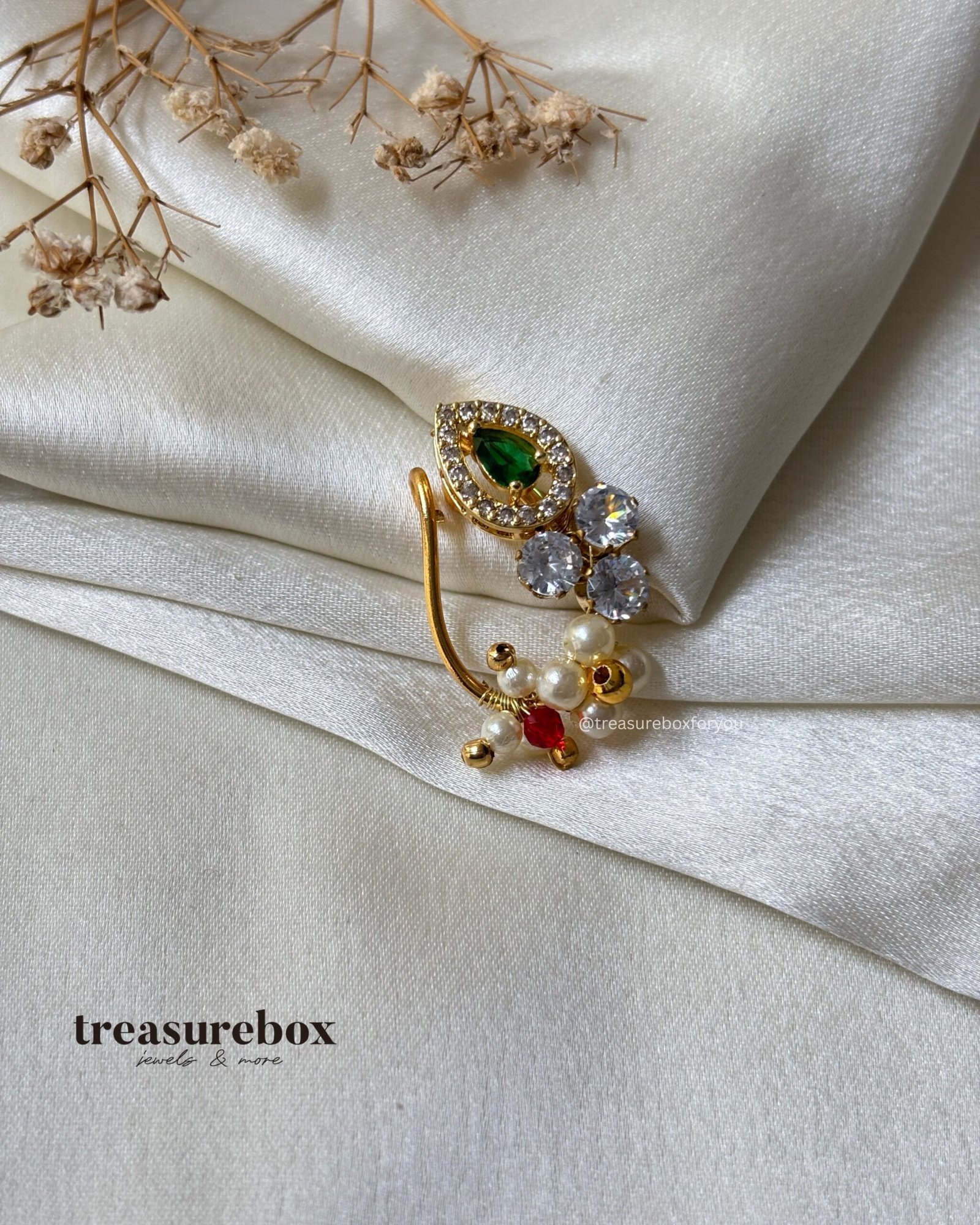 Add a touch of timeless tradition to your look with our handmade Maharashtrian Nath, beautifully crafted to celebrate cultural elegance. This iconic nose ring, often worn during weddings and religious ceremonies, is delicately made with love and attention to detail. Whether you’re a bride or simply honoring your heritage, this Nath is a graceful symbol of Marathi pride.