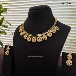 Graceful, refined, and effortlessly beautiful — this diamond necklace set is designed for those who adore subtle sparkle. Featuring finely set diamonds that shimmer gently with every movement, this set enhances your natural elegance without overpowering your look.
