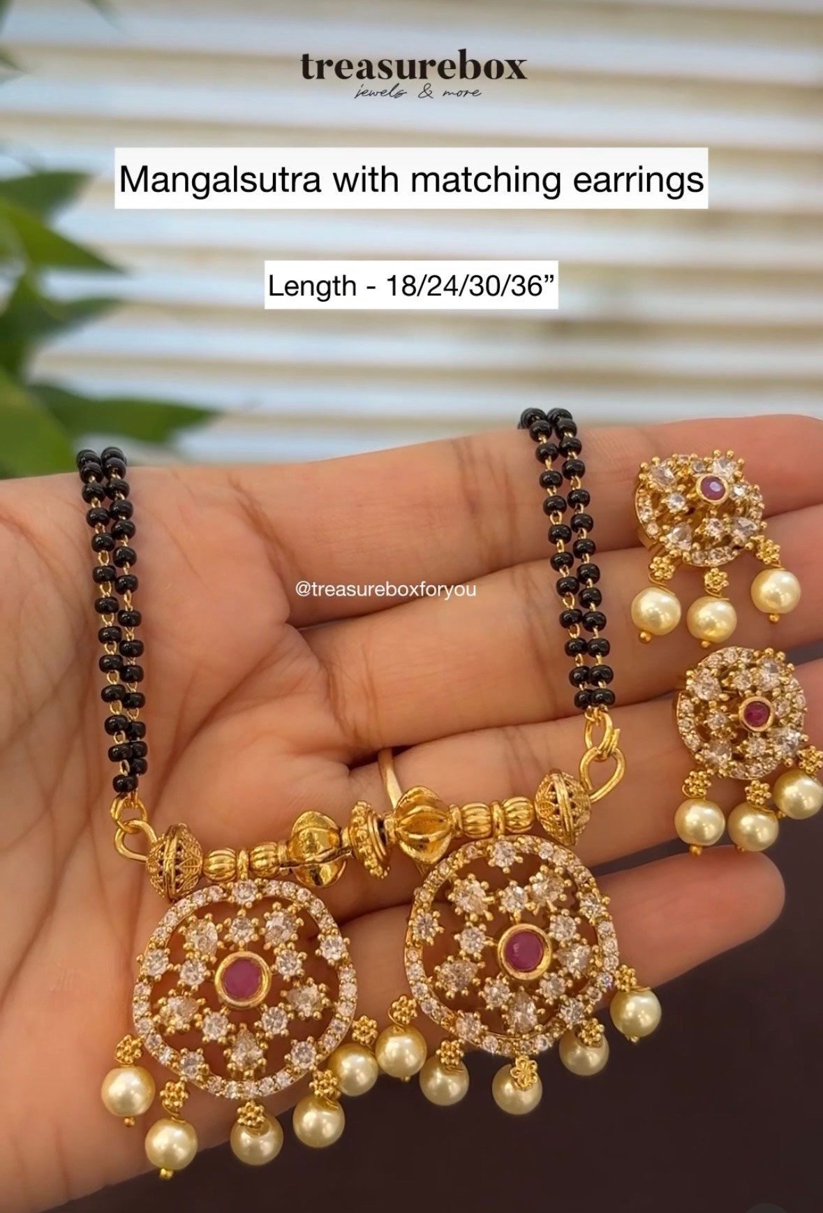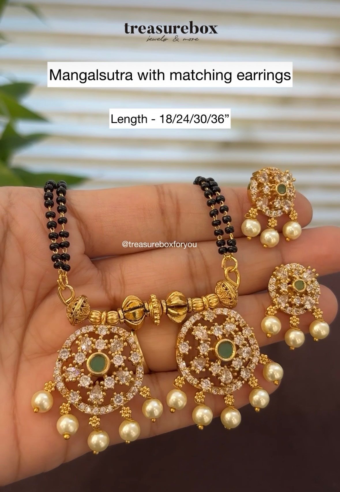 Antique gold plated designer mangalsutra set with matching earrings, featuring elegant detailing and a classic finish. Lightweight and comfortable, perfect for wedding ceremonies & festive occasions.