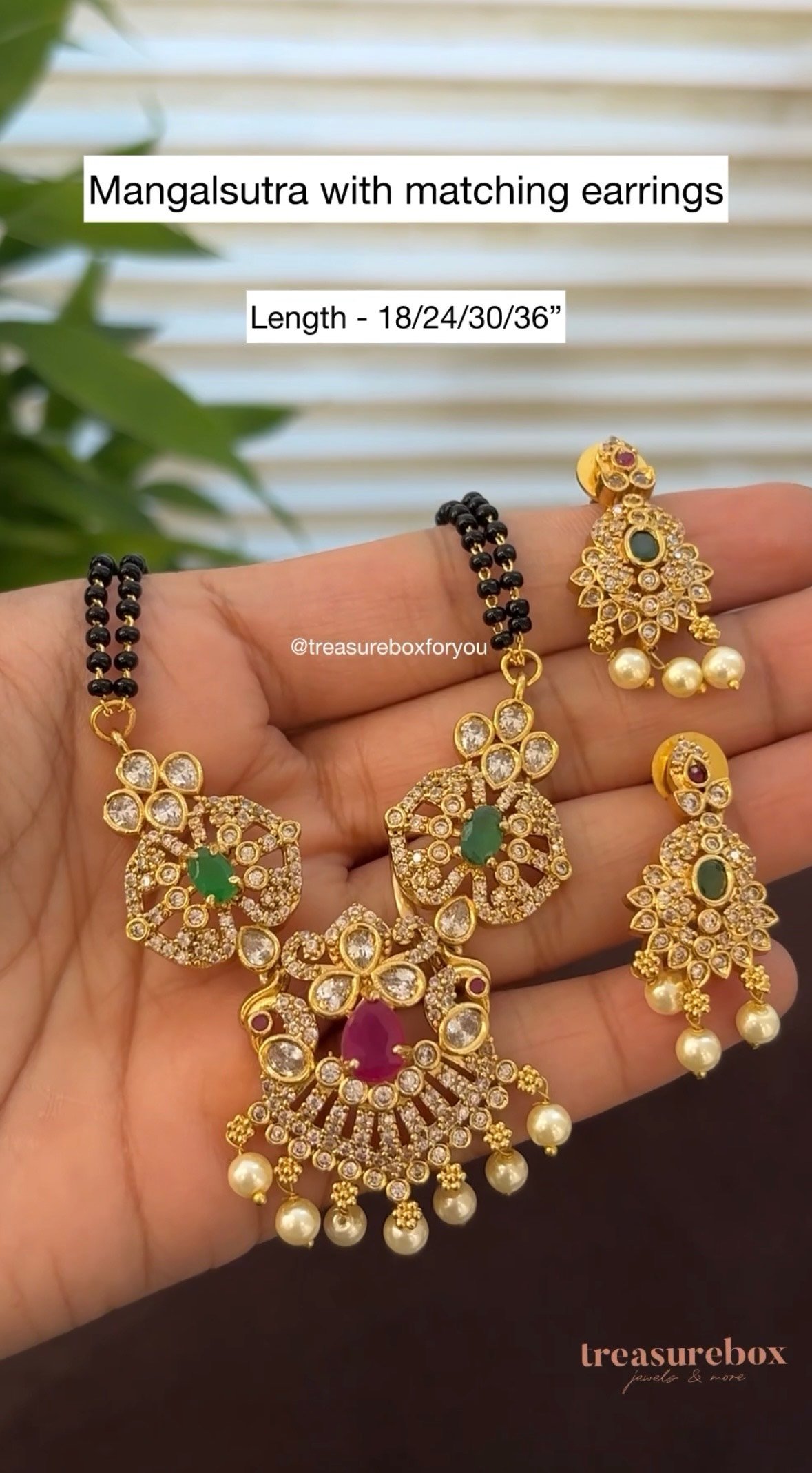 Antique gold plated designer mangalsutra set with matching earrings, featuring elegant detailing and a classic finish. Lightweight and comfortable, perfect for wedding ceremonies & festive occasions.