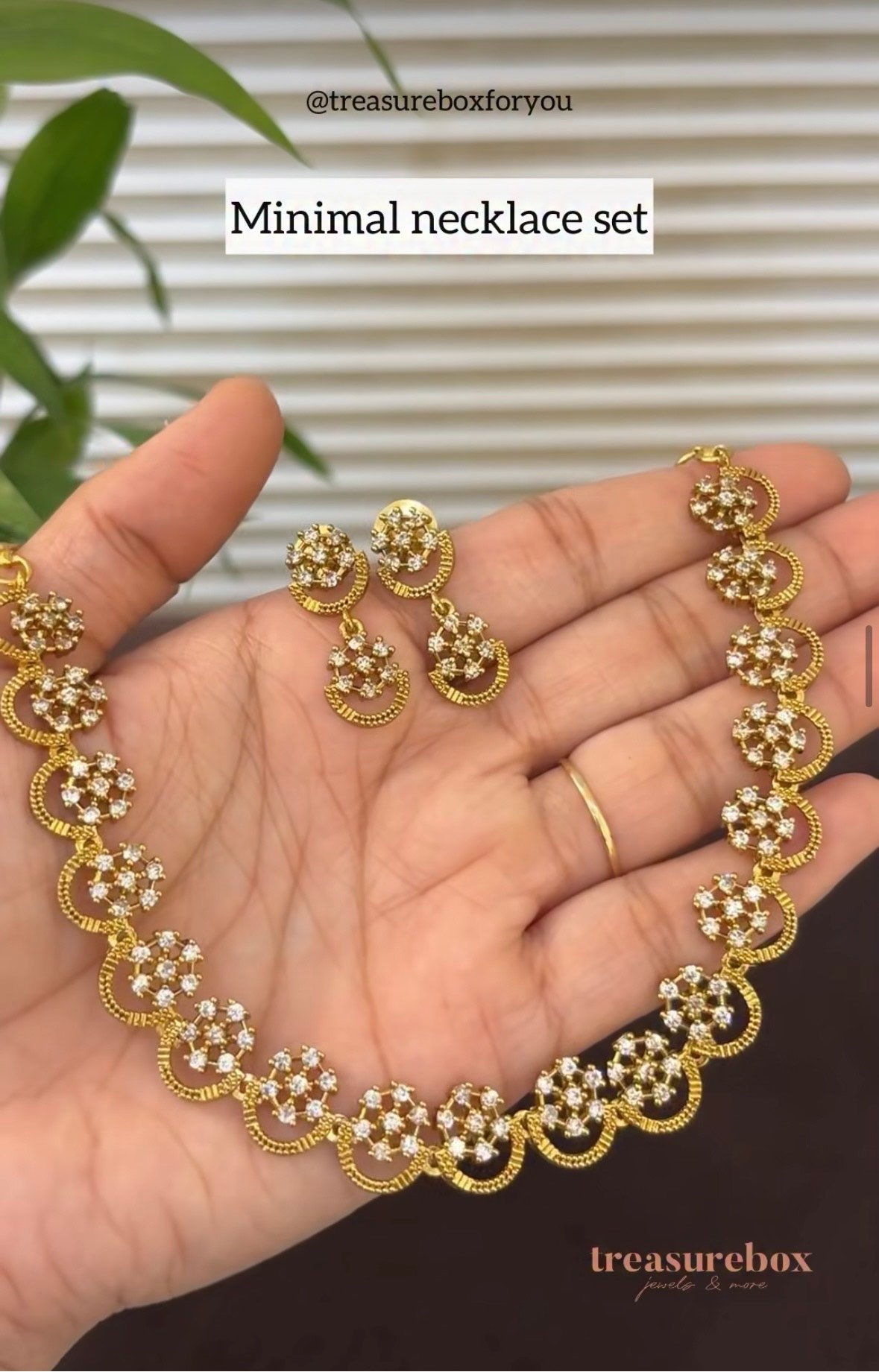 A lightweight antique gold plated necklace set with a minimal design, perfect for those who prefer subtle and classy jewellery.